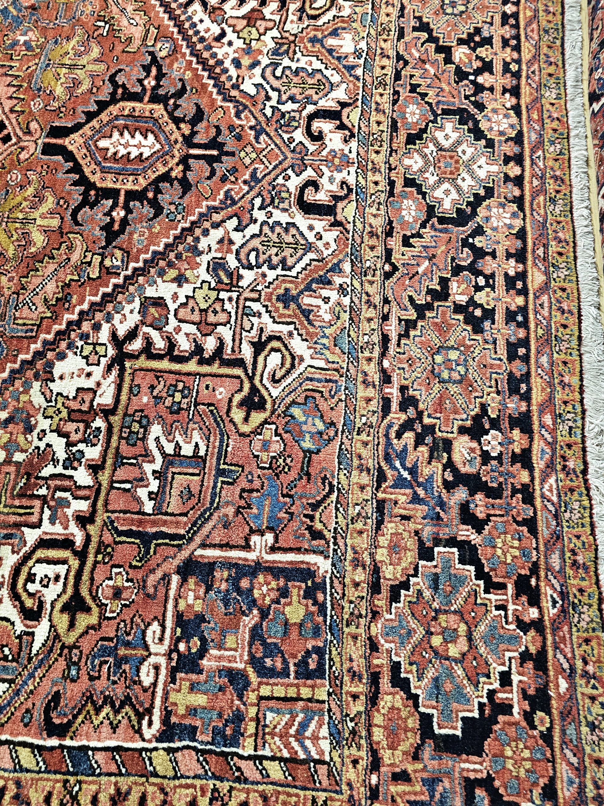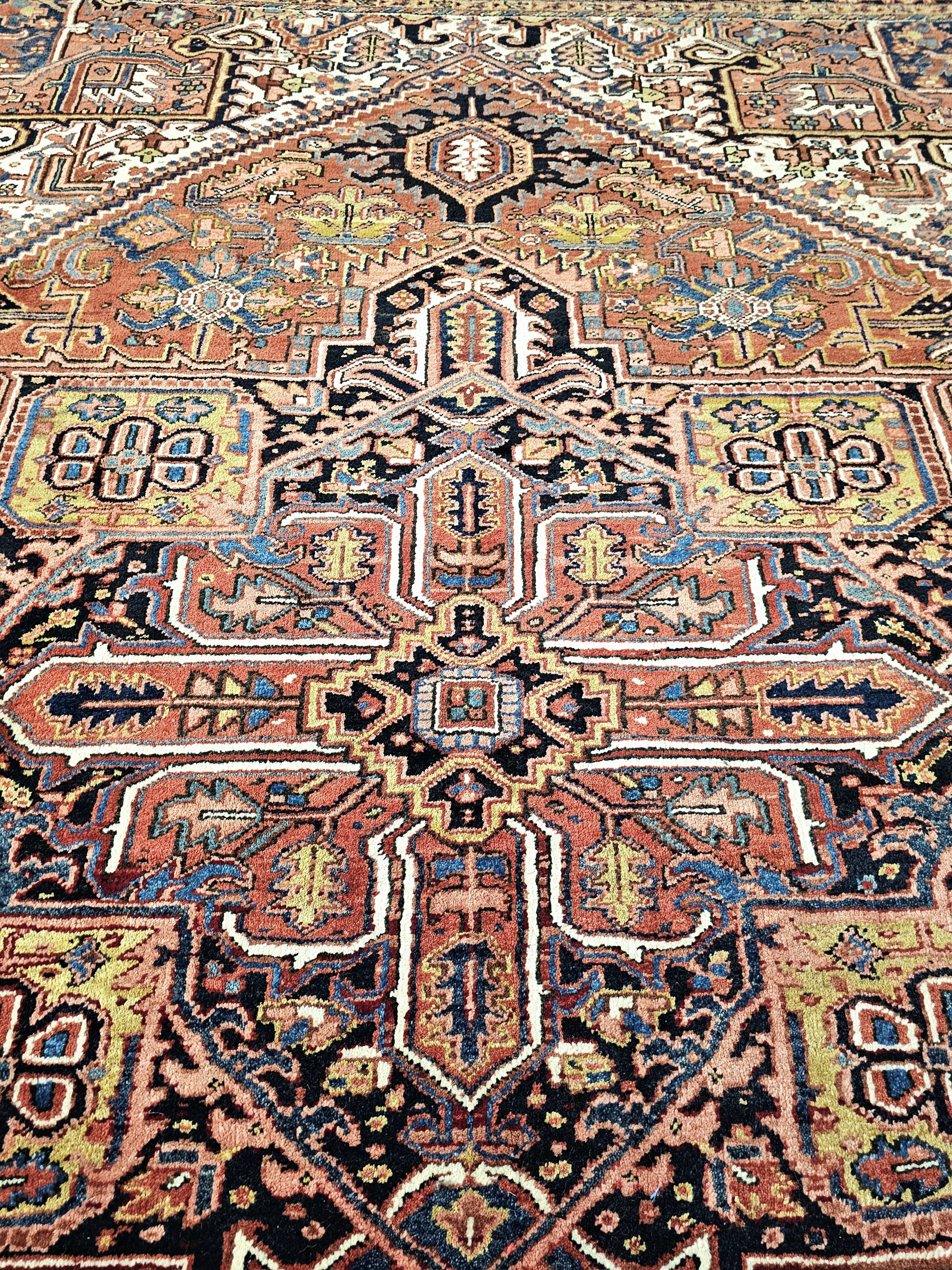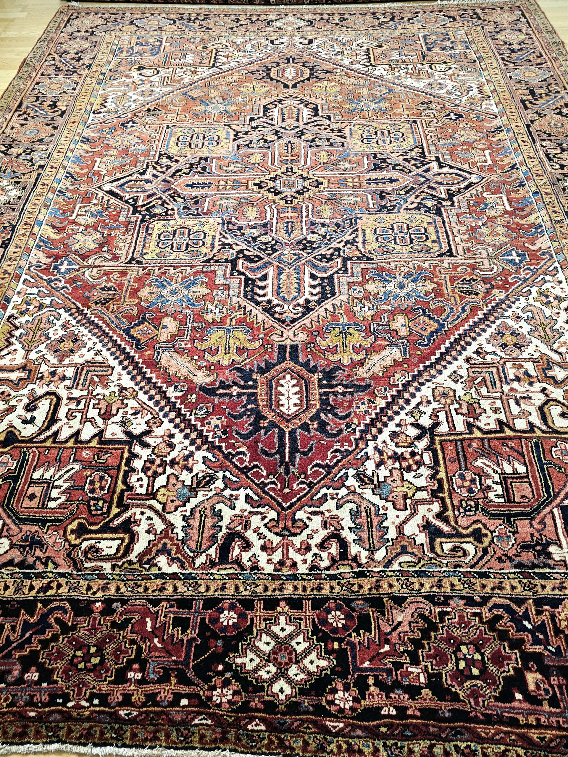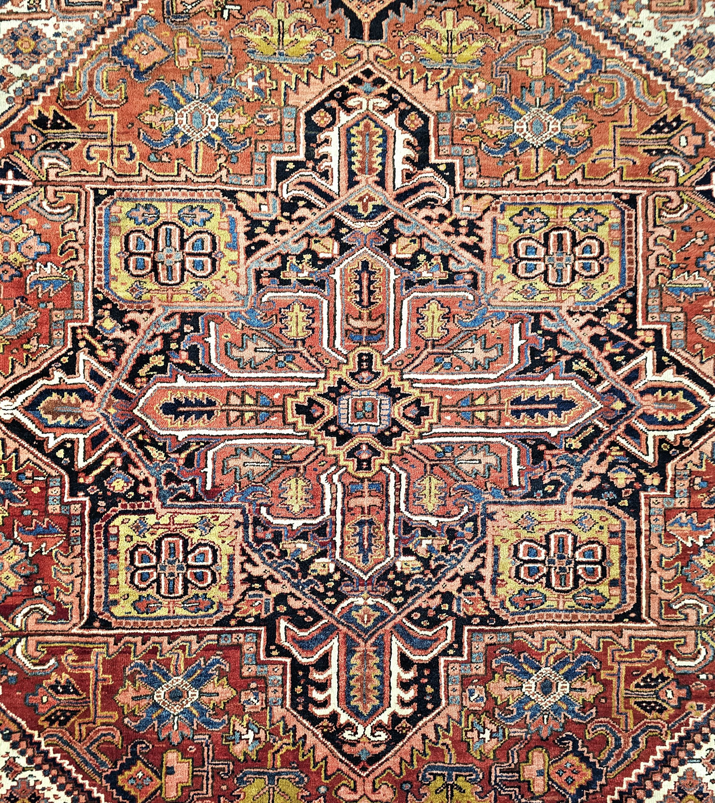 Heriz är en stad som ligger i nordvästra Iran, nära storstaden Tabriz. Heriz-mattor är en av de mest kända mattorna från Iran på grund av dess mycket unika och utmärkande stil. Oftast har Heriz-mattor överdimensionerade geometriska medaljonger, som är skarpt avgränsade mot ett rikt rött, rost eller mörkblått fält. De vanligaste färgerna är brunröd, ljus och mörkrosa, ljus och mörkblå, grön, gul och benvit. Blått och benvit läggs normalt till för att öka kontrasten. Mestadels görs stora mattor av ganska grovt garn på bomullsvarp och med rustikt utförande. Heriz-mattor, med sin höga ullkvalitet, är berömda för sin slitstyrka och tålighet. Heriz-mattor lämpar sig för såväl hem som offentliga miljöer.